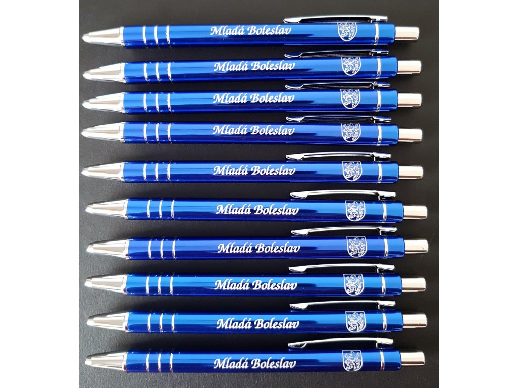 Kvalita a originalita za malou cenu. Lesklé hliníkové tělo zdůrazňuje hodnotu tohoto kuličkového pera, která je vybavena modrou náplní Budget. Po vypsání zakoupíte tuto velikost náplně v jakémkoli papírnictví. Hliníkové tělo pera je ideální pro laserové gravírování. Délka textu může být maximálně 70mm, jeden nebo dva řádky pokud nemáte vlastní grafiku.